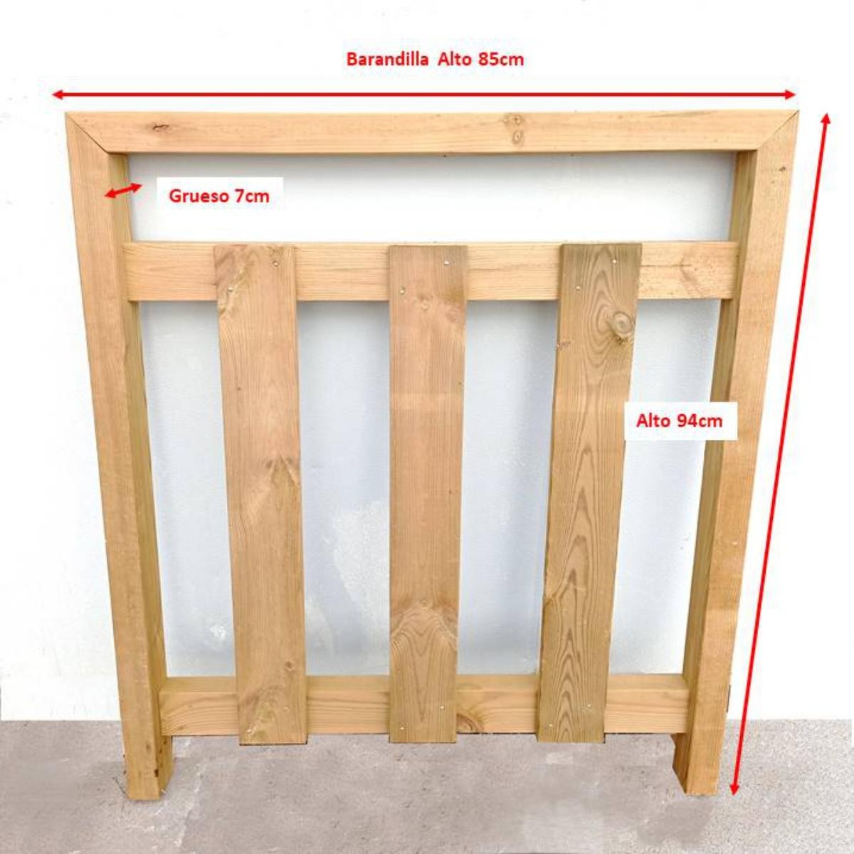 Barandilla vertical largo 85cm. Alto 94cm. Madera tratada con autoclave para exterior.