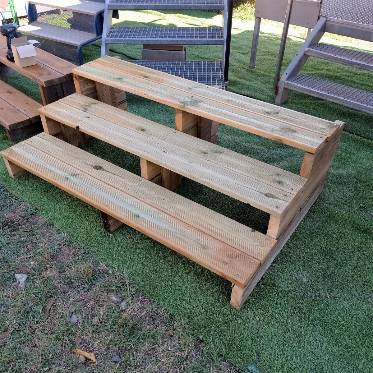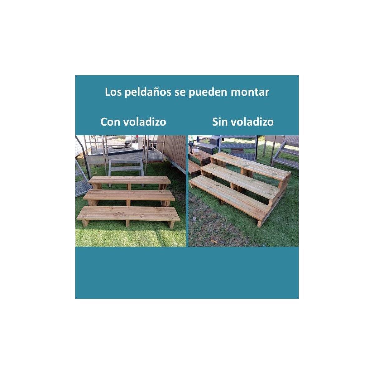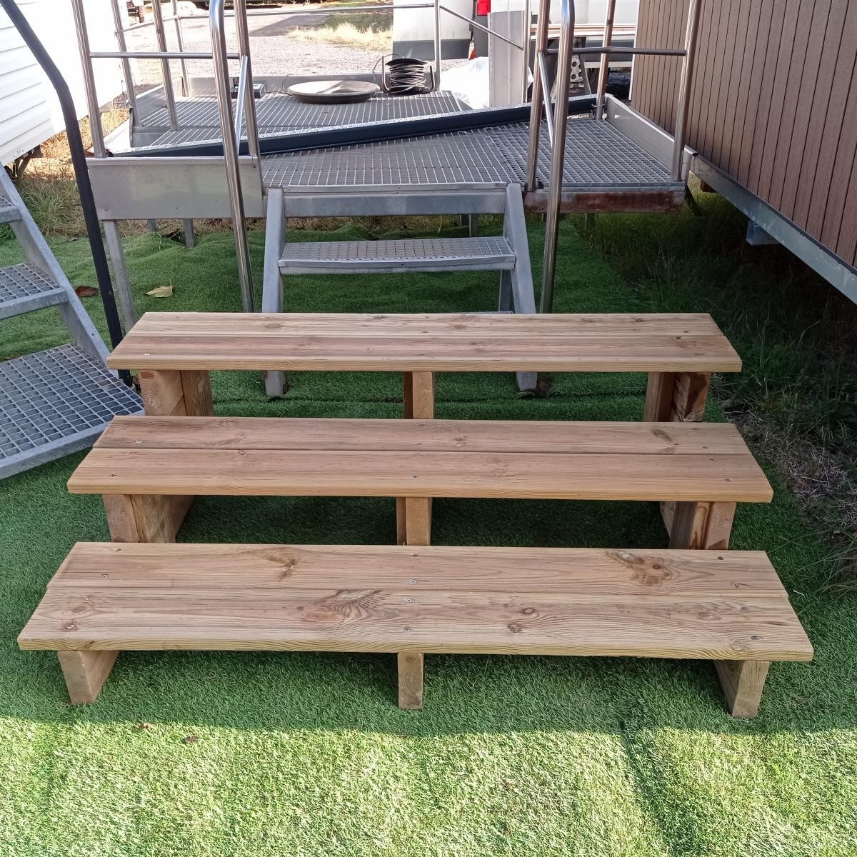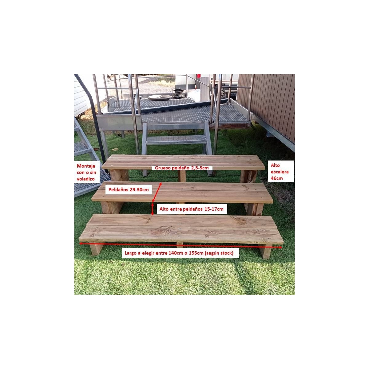 Escalera de madera 3 peldaños. Madera tratada con autoclave para exterior.