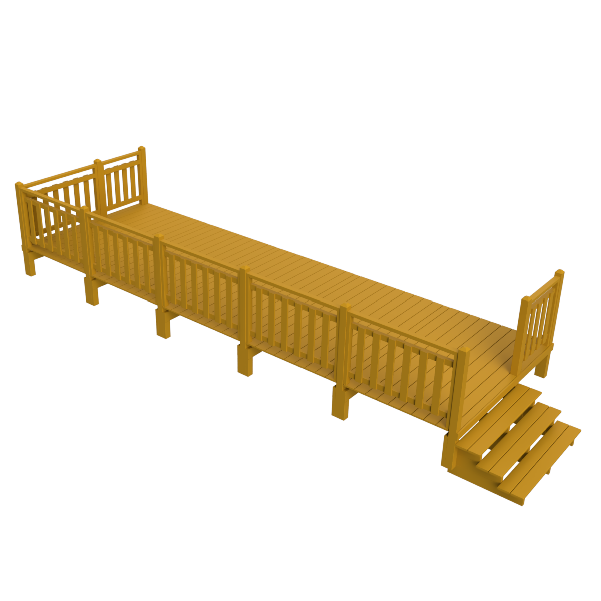 Opciones bajo pedido: cubierta con toldo, barandillas de diseño, entrada podium y paneles de ocultación. También se pueden fabricar otras medidas. Consúltanos.